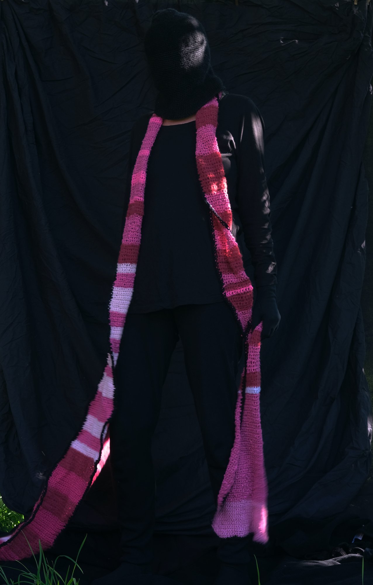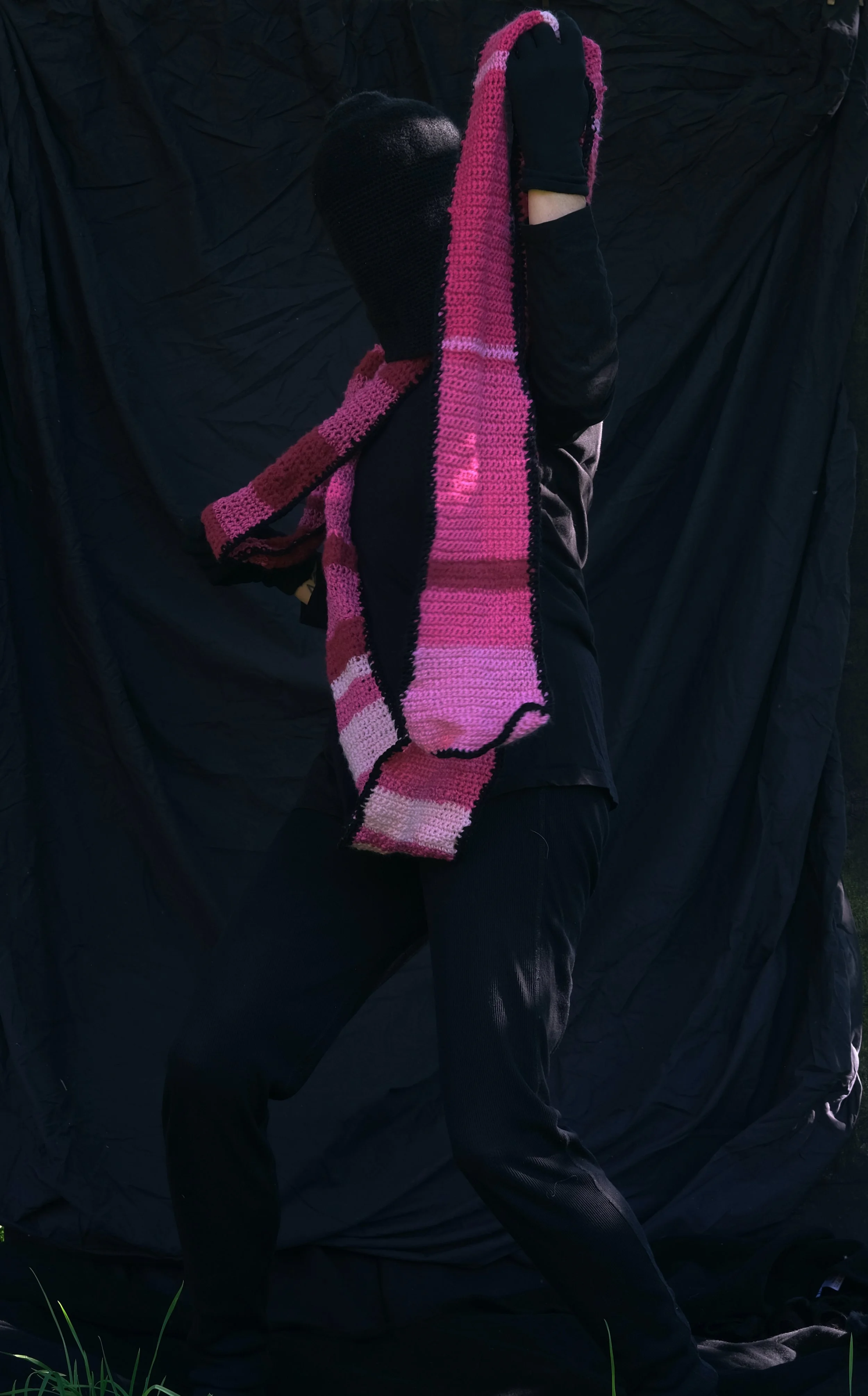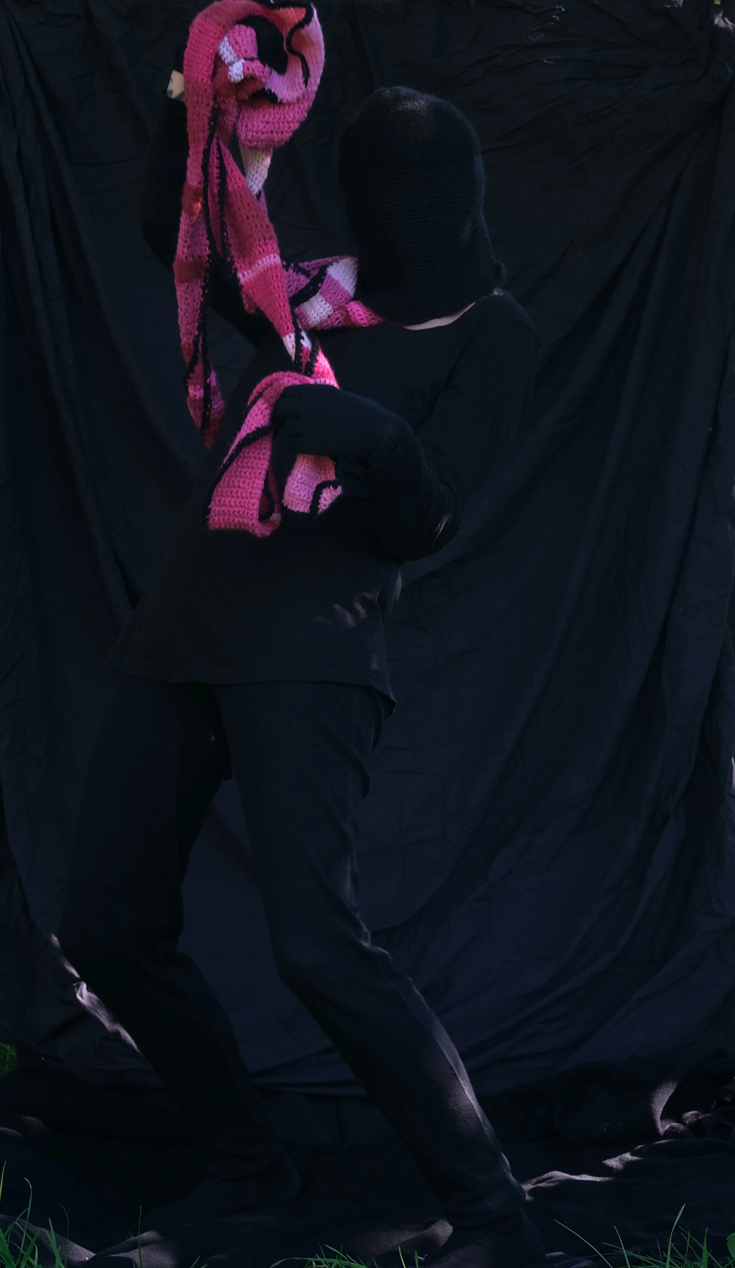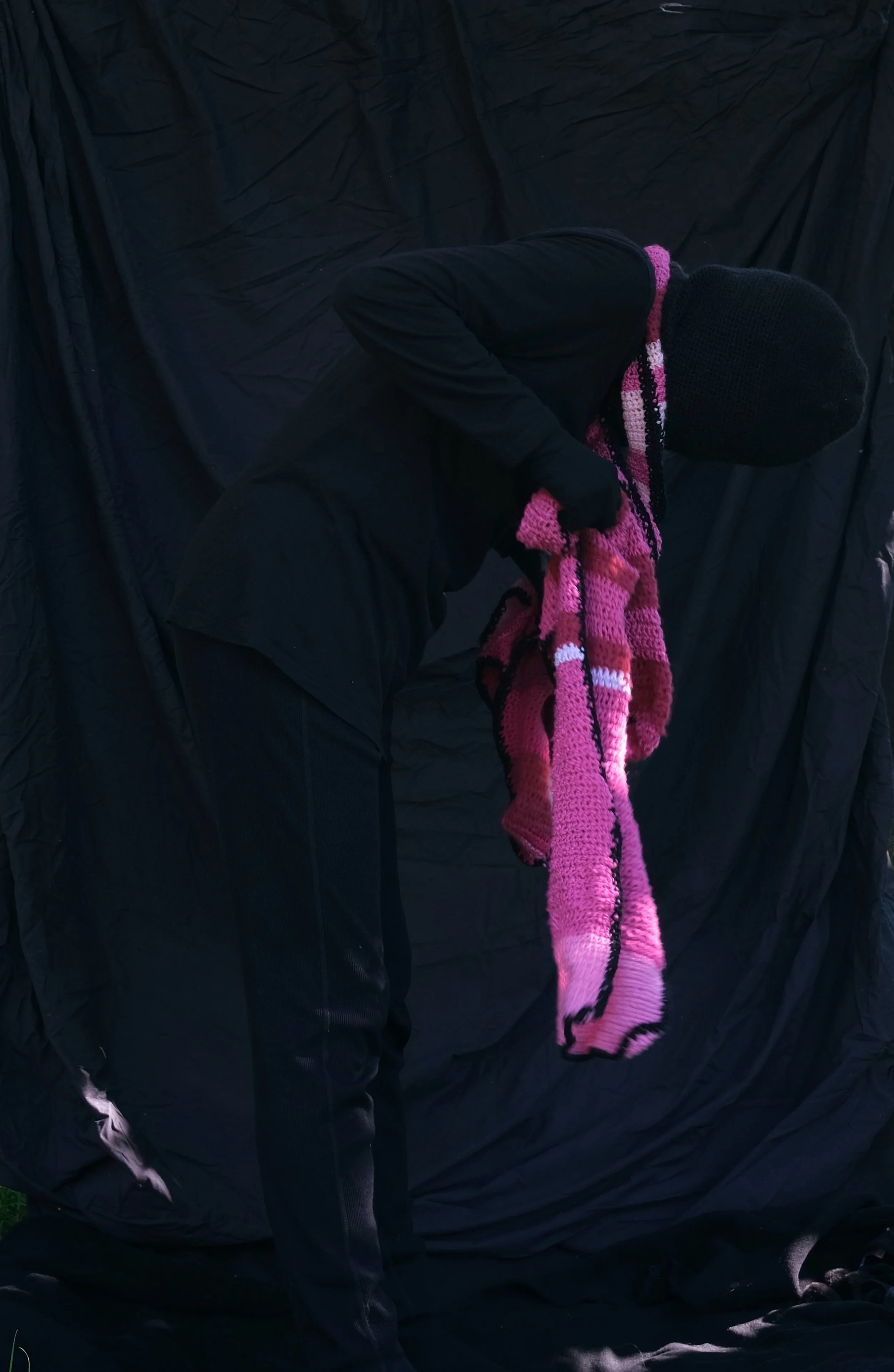 Pink scarf. Lek med kropp, bevegelse, lys og mørke. Iscenesettelse. Fagerstrand 2025